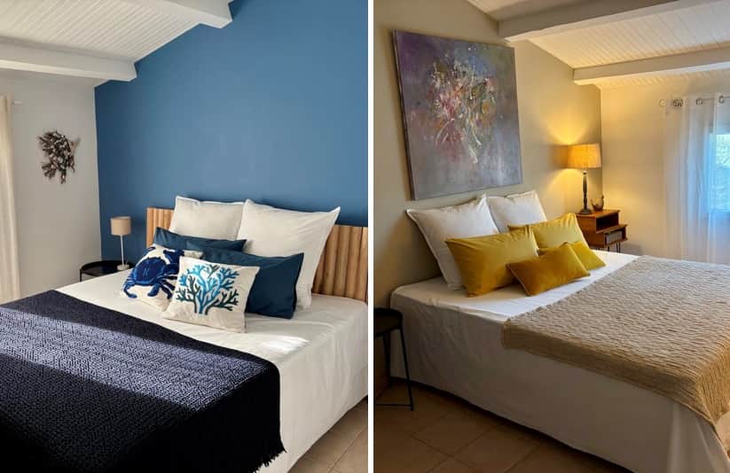 - une chambre climatisée côté patio avec lit double queen size (160 x 200 cm), possibilité de transformer en 2 lits séparés ( 80 x 200 cm) sur demande préalable